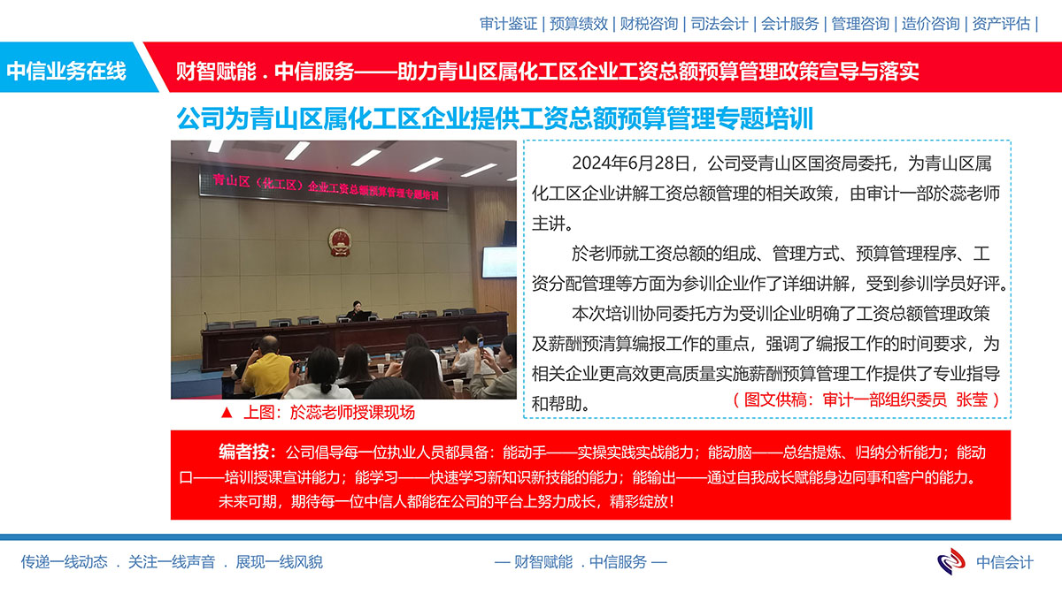 07/172024湖北中信事務(wù)所為青山區(qū)屬化工區(qū)企業(yè)提供工資總額預(yù)算管理專題培訓(xùn)