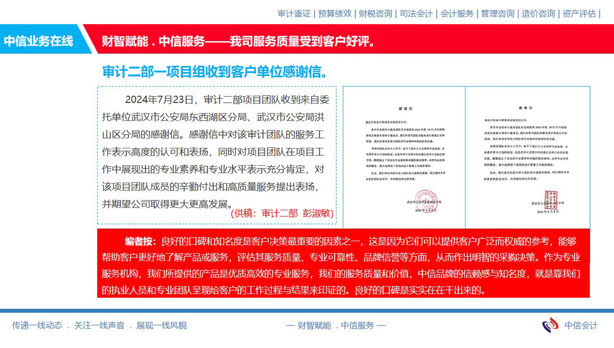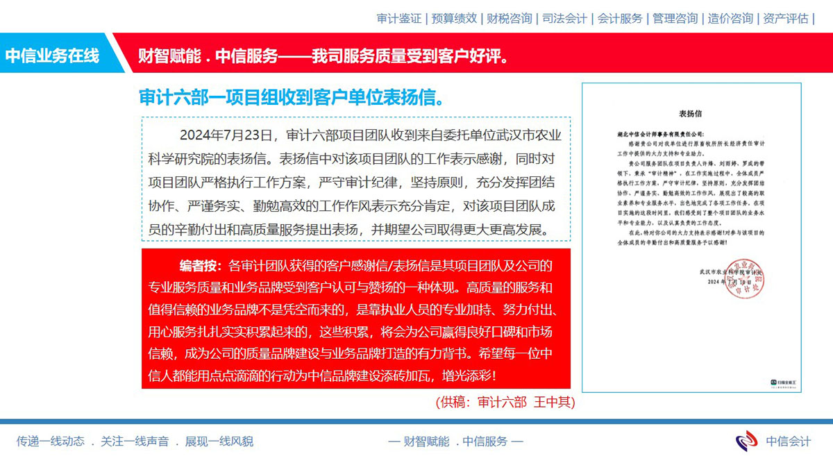 07/222024武漢市儀表電子學(xué)校收支專項審計表揚信