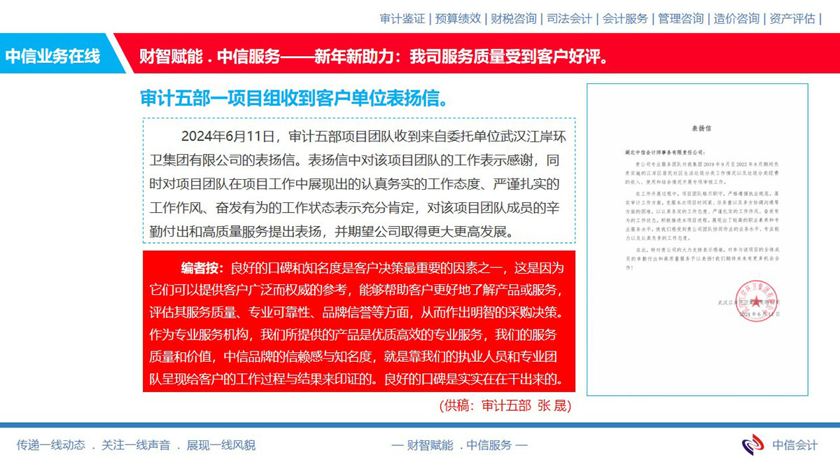 06/212024武漢江岸環(huán)衛(wèi)集團(tuán)有限公司表?yè)P(yáng)信