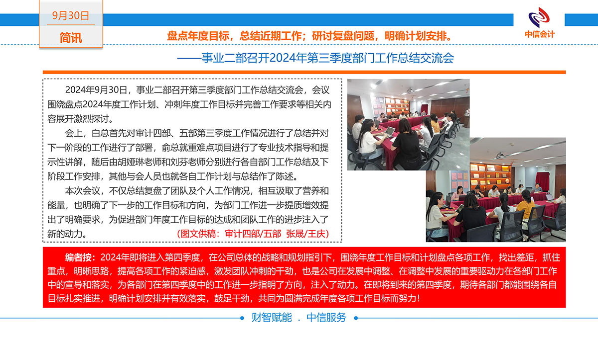 ——事業(yè)二部召開2024年第三季度部門工作總結交流會 -
