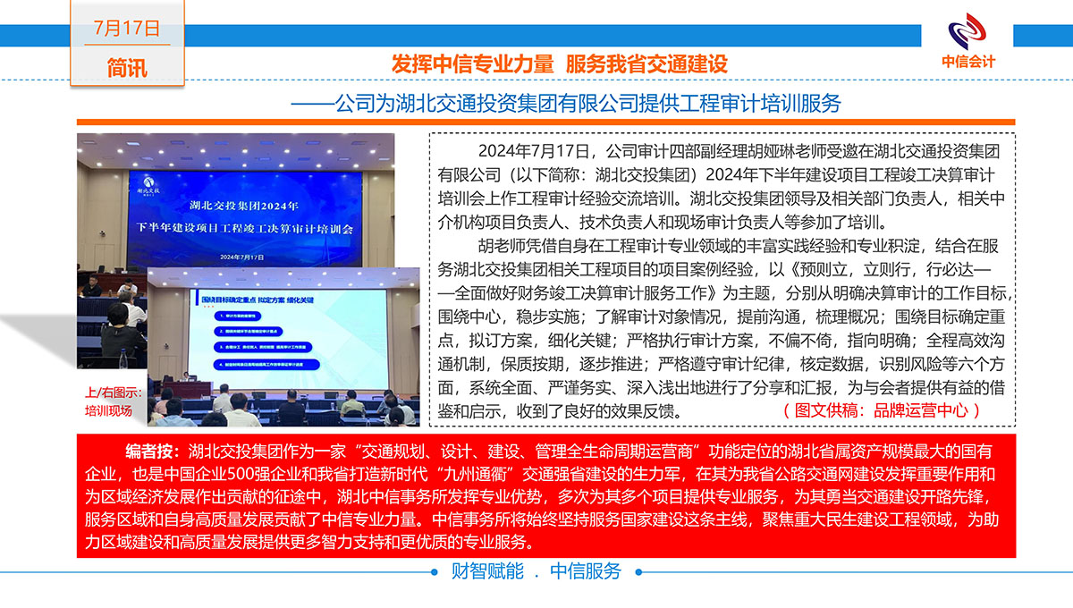 ——公司為湖北交通投資集團(tuán)有限公司提供工程審計(jì)培訓(xùn)服務(wù) -