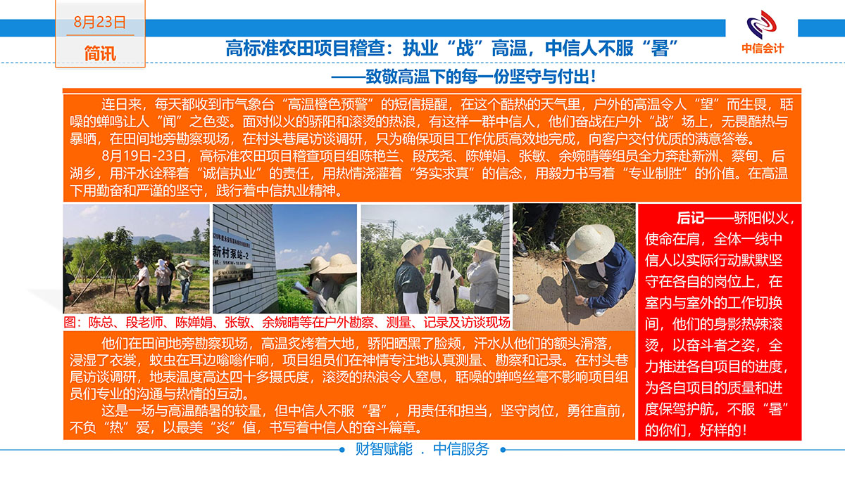 08/272024高標(biāo)準(zhǔn)農(nóng)田項(xiàng)目稽查:執(zhí)業(yè)"戰(zhàn)"高溫,中信人不服"暑"