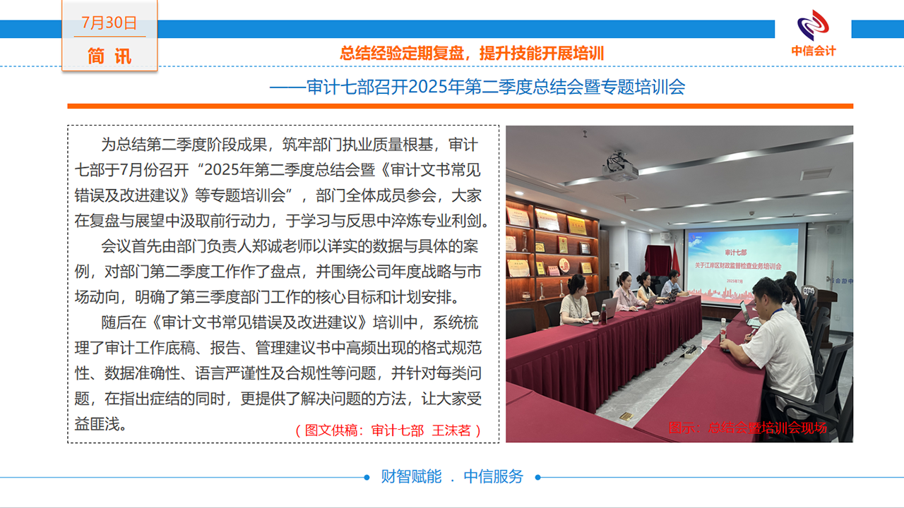 ——審計(jì)七部召開(kāi)2025年第二季度總結(jié)會(huì)暨專(zhuān)題培訓(xùn)會(huì) -