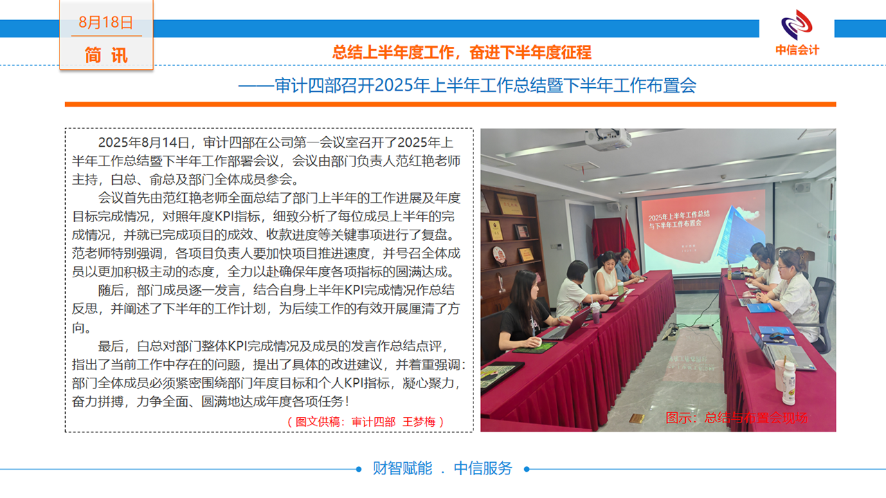 ——審計(jì)四部召開(kāi)2025年上半年工作總結(jié)暨下半年工作布置會(huì) -