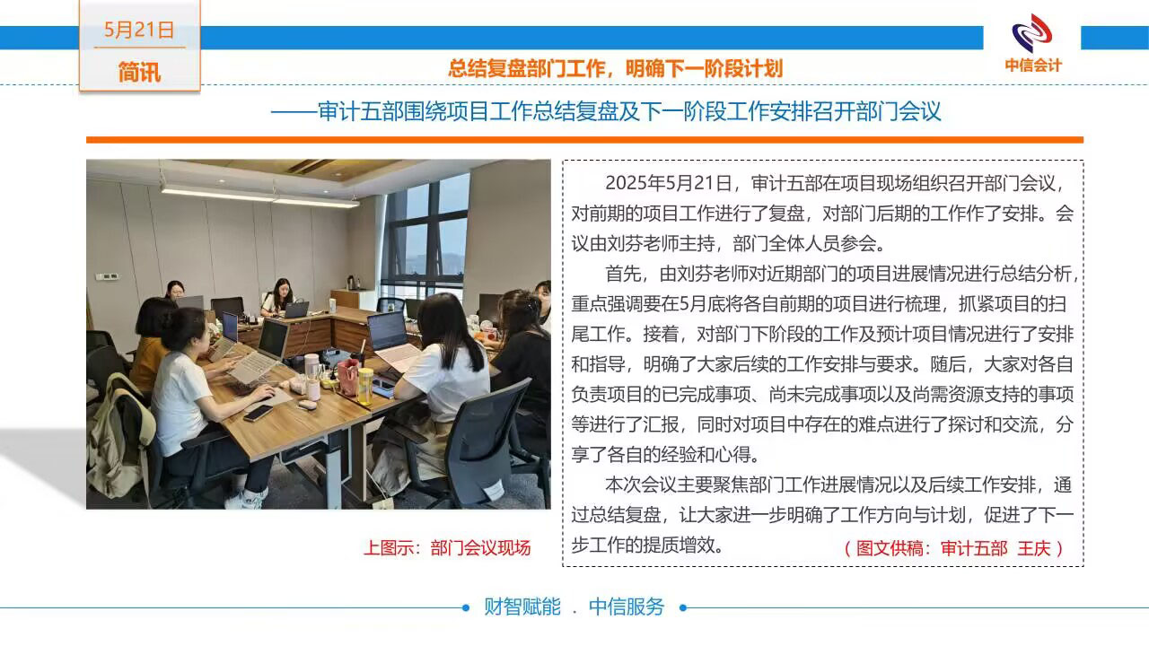 ——審計五部圍繞項目工作總結(jié)復盤及下一階段工作安排召開部門會議 -