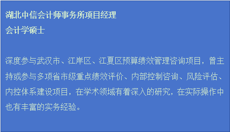 前言:當前,我省正在加快推進大財政體系建設為高質(zhì)量發(fā)展提供強有力支撐,我市也正著力“超大城市大財政體系建設的探索與實踐”并大力推進大財政體系建設“全套試點”,在這一發(fā)展要求和背景下,進一步規(guī)范和強化各級政府預算單位預算績效管理對于優(yōu)化財政資源配置、提升公共服務質(zhì)量、強化預算約束、推動政府職能轉(zhuǎn)變、發(fā)揮績效評價功能等方面具有積極作用和意義。湖北中信會計師事務所作為專業(yè)服務機構(gòu),為服務我市大財政體系建設發(fā)揮專業(yè)力量正當其時,正用其力,也正盡其責,在助力我市提升績效管理水平,服務我市區(qū)域建設和發(fā)展的使命與熱情正體現(xiàn)在一個個咨詢培訓服務和優(yōu)質(zhì)高效的項目執(zhí)業(yè)中。