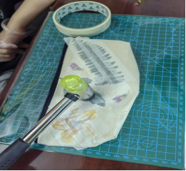 本次活動(dòng)以非遺植物拓印 --“拓花錘草”為主要內(nèi)容展開(kāi),它屬于植物染色的特殊技藝,通過(guò)布局、敲打、固色等步驟,將花草的汁液拓在布上,無(wú)需添加化學(xué)藥劑、更不用費(fèi)時(shí)熬煮,就能留下大自然的香氣、紋理、色彩,創(chuàng)造大自然的生態(tài)環(huán)境美學(xué)。