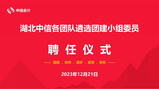 12月21日下午,為進(jìn)一步貫徹“中信家文化”,落實(shí)“頌五愛 講四合”的中信職場(chǎng)文化,打造“團(tuán)結(jié)、協(xié)作、進(jìn)步、高效、快樂”的優(yōu)秀中信團(tuán)隊(duì),湖北中信會(huì)計(jì)師事務(wù)所主任會(huì)計(jì)師王靜創(chuàng)新團(tuán)隊(duì)建設(shè)管理模式,對(duì)團(tuán)隊(duì)建設(shè)采取積分考核機(jī)制,實(shí)踐將“支部建在連隊(duì)上”的組織管理形式,對(duì)經(jīng)公司事業(yè)合伙人和各團(tuán)隊(duì)遴選出的團(tuán)隊(duì)建設(shè)小組委員舉行授聘儀式。