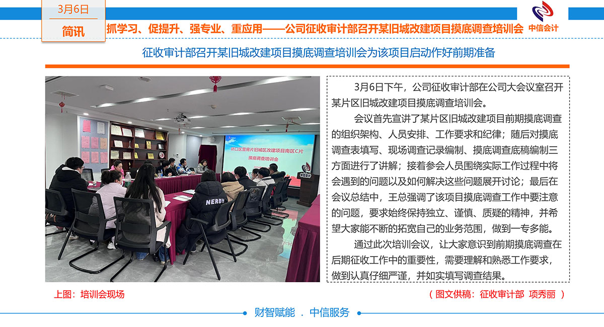 ----公司征收審計(jì)部召開(kāi)某舊城改建項(xiàng)目摸底調(diào)查培訓(xùn)會(huì)